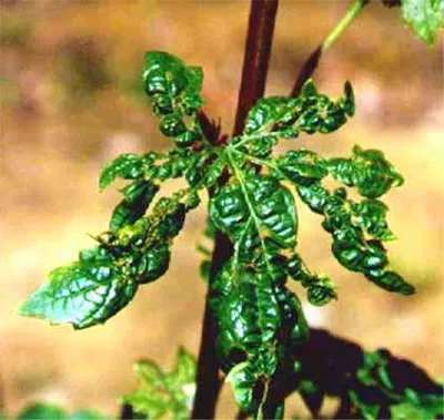 - Через кілька днів після зараження на поверхні листових пластин з'являються жовто-зелені плями, прожилки листків усередині плям стають коричневими.