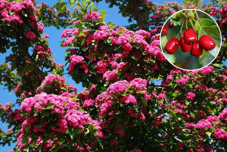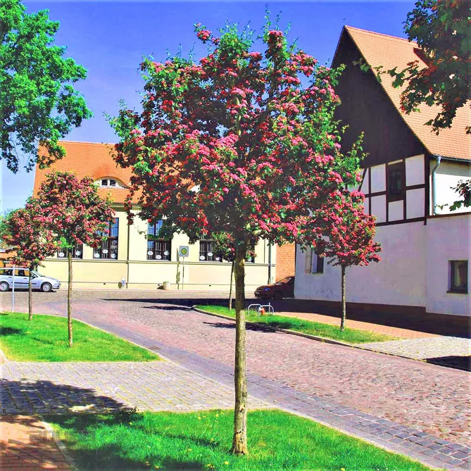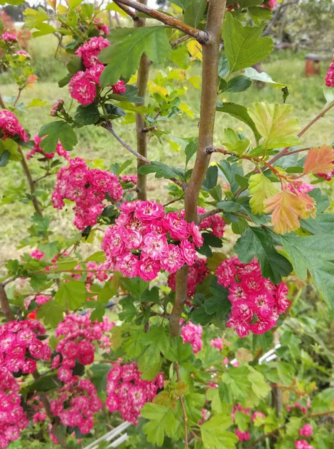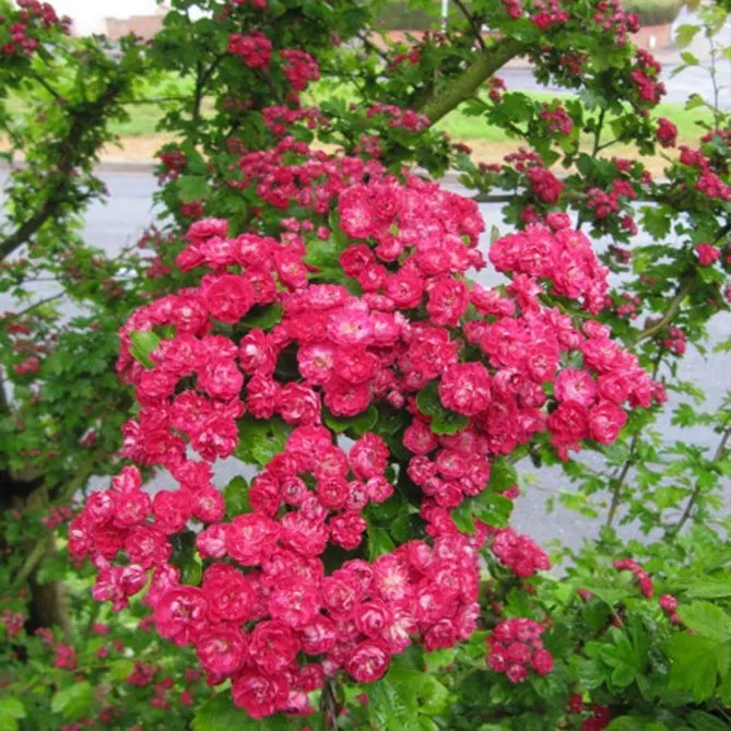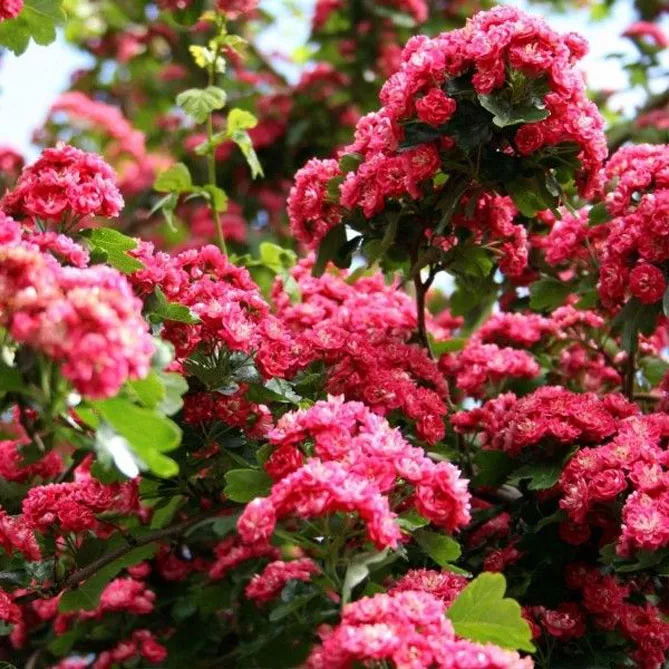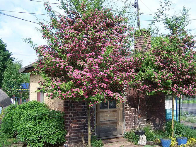 - Сорт «Пауль Скарлет» (Paul’s Scarlet) – один з найкрасивіших, квітне з квітня по червень. Висота дорослої рослини – 6 м. Сорт Paul’s Scarlet відомий з 19 століття і недарма, рідко зустрічаються дерева і чагарники з таким гарним цвітінням. У травні дерево буквально вкрите махровими квітами неймовірного темно-рожевого кольору.