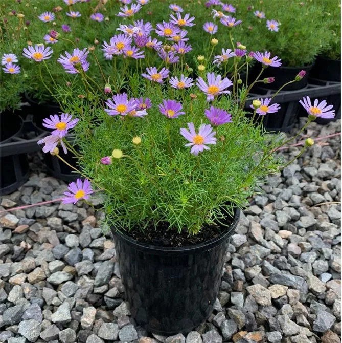 - «Місті мауве» Misty Mauve і «Хаппі фейс пінк» Happy Face Pink – сорти виду Brachycome segmentosa, мають двокольорові лілово-блакитні квітки.