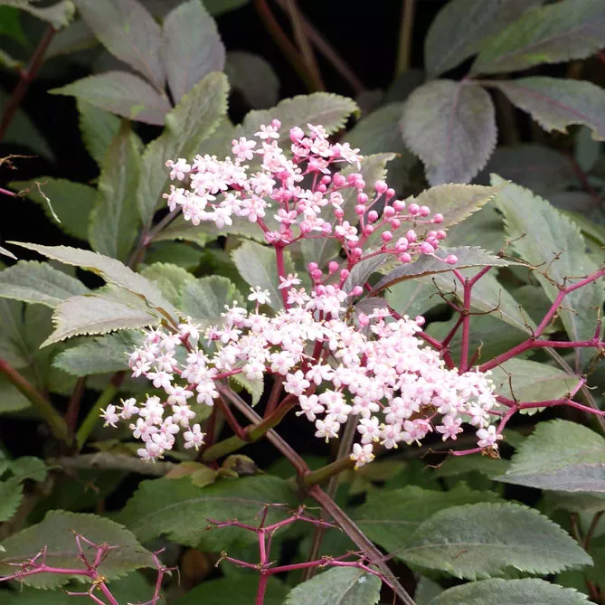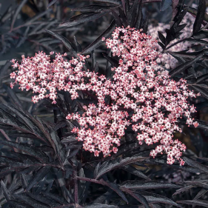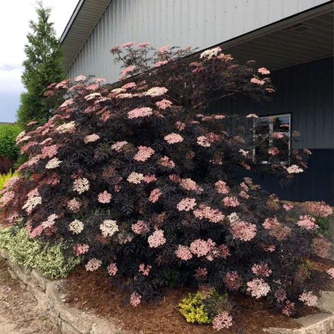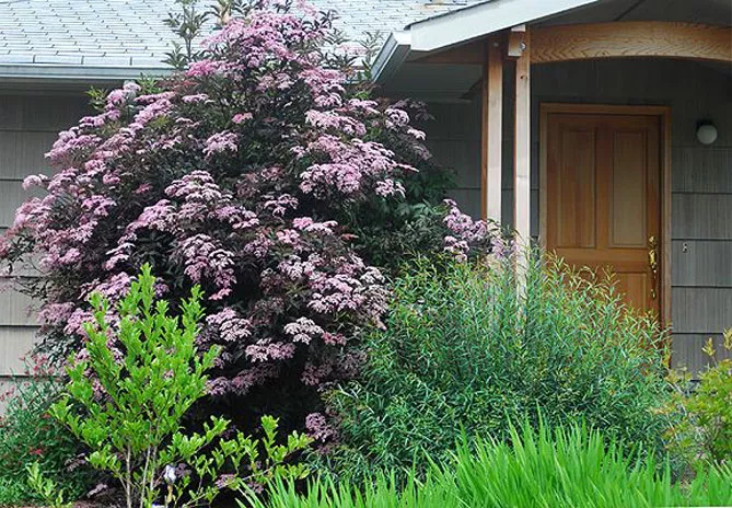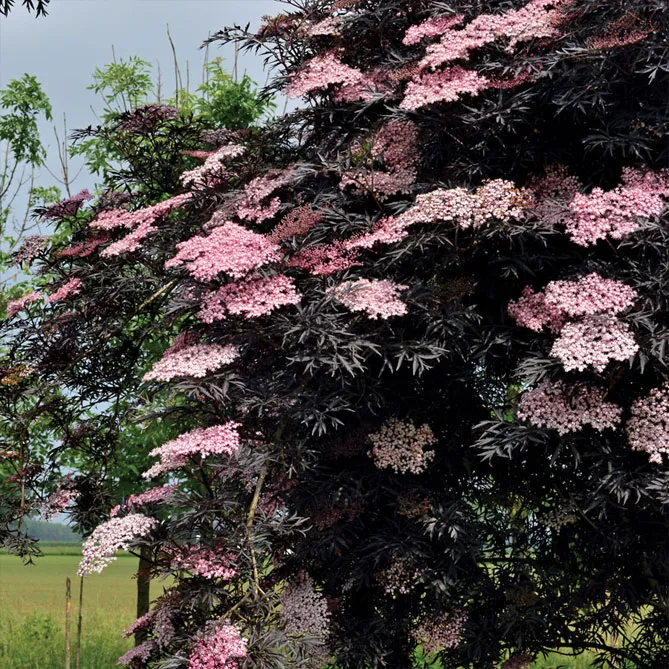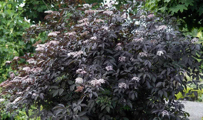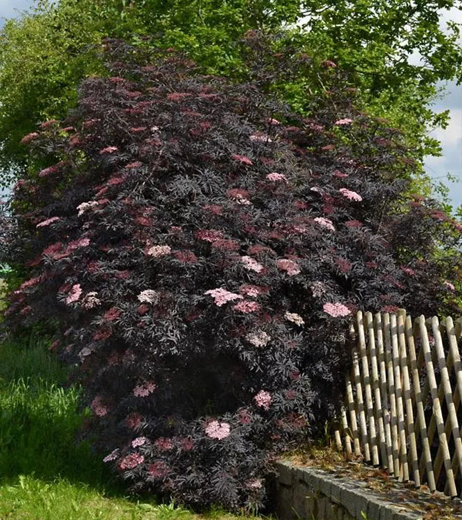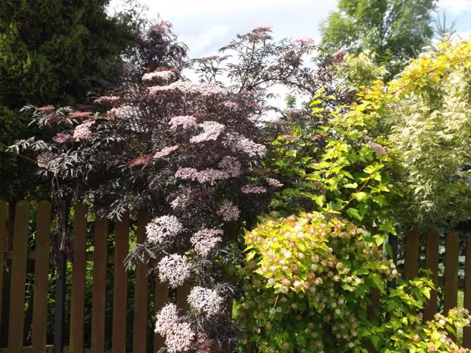Для гармонії рожевого та фіолетового на клумбі посадіть сорт бузини «Блек Б'юті» у компанії з: