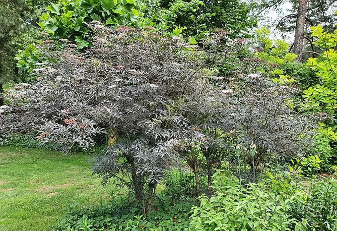 Бузина являє собою розлогий кущ із дещо розмитим силуетом і швидким зростанням, через 5-6 років виходить дорослий кущ.