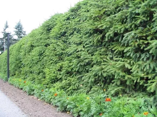 Особливо рекомендується для любителів природних, нерегулярних огорож, сербська ялина. Цей декоративний чагарник має тонку форму, дуже щільний. Посадку живої швидкорослої огорожі з ялини потрібно виконувати близько один до одного, щоб рослини могли утворювати щільну стіну. Це ідеальне рішення, якщо потрібно оточити ділянку, господарські будівлі, паркани, будинок високою зеленою стіною. Сербська ялина досягає вражаючих розмірів – може вирости до 15 метрів.