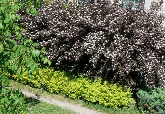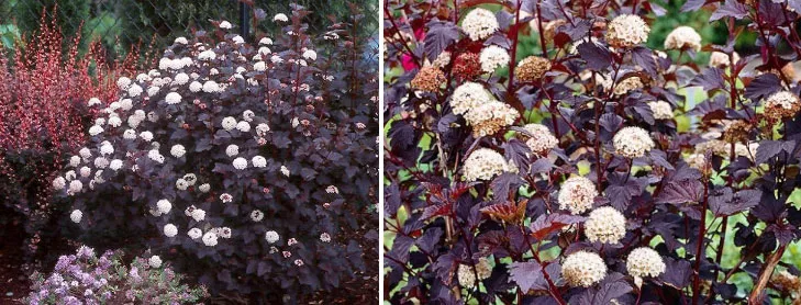 Дводольний Physocarpus opulifolius – чагарник з темно-фіолетовим листям. У квітні з'являються білі, ніжні квіти, зібрані в парасольки, потім перетворюються на декоративні, червоні ягоди. Без обрізки пагони пузирника досягають висоти 2 метрів, з річним приростом 30 сантиметрів.