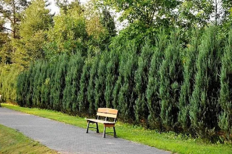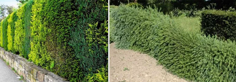 Розмірковуючи, з чого краще зробити огорожу, варто розпочати пошуки з відомих хвойних рослин. Декоративні хвойні чагарники на огорожі – чудова ідея, що дозволяє створити найшвидкоросліший паркан. Краще підійдуть сорти, які не викликають особливих проблем у зимовому догляді. Хвойні швидкорослі кущі – одні з найменш вимогливих рослин, що дозволяють забезпечити чудовий зовнішній вигляд цілий рік.