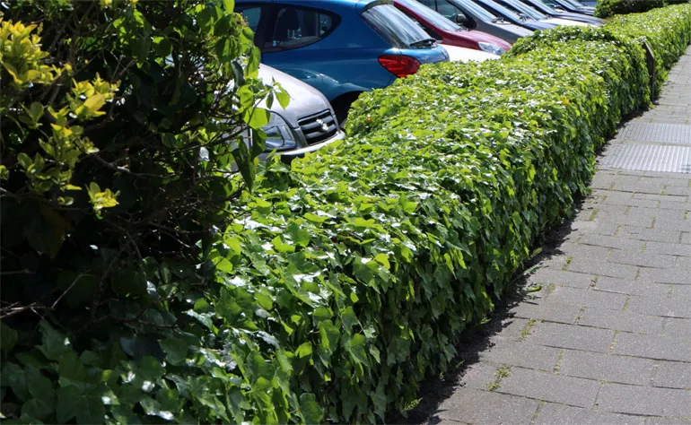 Плющ – пластичний «матеріал». При частій обрізці виглядає як гладка стіна, коли виростуть молоді пагони – набуває хвилястої, м'якої текстури. Садовий плющ ідеально підходить для створення огороджень, що залишаються зеленими взимку, ефектно прикрашаючи сад.