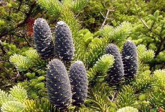 Голки короткі, вузькі, плоскі, зверху – темно-зелені, блискучі, знизу з двома білими або сірими смужками. Запах голок приємний, бальзамічний. Шишки вкриті склоподібною смолою. За розміром маленькі, довжиною 5-10 см, дозрівають і розвалюються у вересні-листопаді.