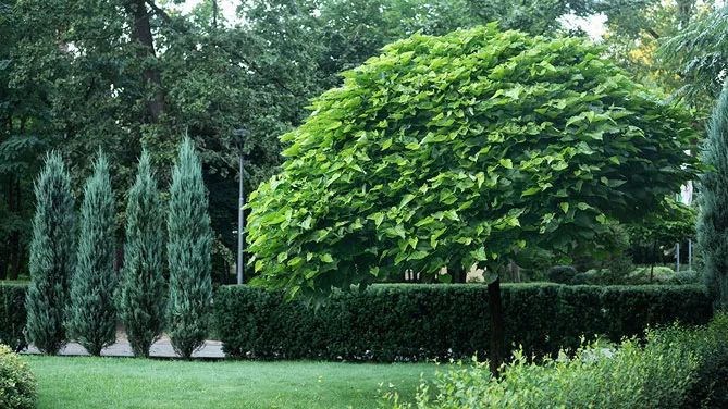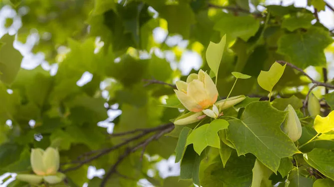 Американське тюльпанове дерево або Ліріодендрон тюльпановий (Liriodendron tulipifera) – хороший вибір для нетерплячих садівників. Річний приріст ліріодендрона може сягати 30-40 см, рослина може жити до 300 років. У тюльпанового дерева дуже незвичайні, характерні листки, ніби вирізані за шаблоном. Своєю назвою Liriodendron tulipifera завдячує гарним, бокалоподібним, жовтим квітам, схожим на тюльпани.