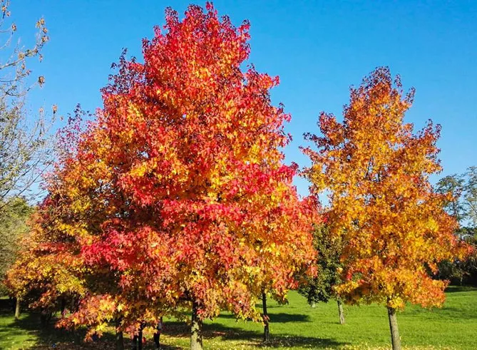 Ліквідамбар смолоносний (Liquidambar styraciflua) – одна з найбільш адаптивних листяних рослин за своєю стійкістю до різних ґрунтів та умов місцевості. Дуже гарне листя ліквідамбару восени – спочатку жовте, потім малинове та фіолетове. Крона пірамідальна, висотою до 30 м. Рослина любить сонячні місця, не любить застоїв води в ґрунті. Зимує в середній смузі добре.