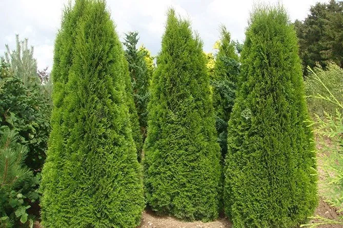 Дуже популярна вічнозелена рослина тую часто висаджують у живих огорожах. Існує кілька видів туй. Найпопулярніші Брабант та Смарагд. Туя росте швидко – маленькі саджанці за 5 років виростають до 2 метрів. На цьому можливості туї не закінчуються. Якщо її регулярно не підрізати, вона може перетворитися на дерево висотою кілька метрів. Туя – дуже декоративна, конусоподібна рослина, за будовою схожа на компактну ялинку.