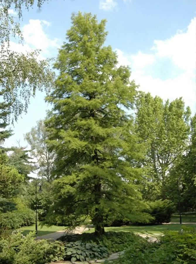 Китайська метасеквоя або гліптостробоїдна (Metasequoia glyptostroboides) відома як болотяна модрина, добре росте у вологих умовах. Метасеквоя росте в Київській області, у перші зими може вимерзати до рівня снігу, потім росте добре. Молоді прирости можуть витримати заморозки до -5 °С. Рослина досягає висоти 25-30 метрів, має струнку конічну крону. Хвоя м'яка, густо вкриває пагони. Восени рослина стає жовтою та коричневою, листя опадає разом із вкороченими пагонами. Шишки дрібні, кулясті.