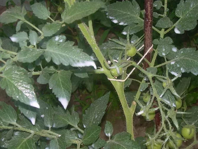 Оприскування фунгіцидами слід проводити на всьому томаті: листках, стеблі, плодах.