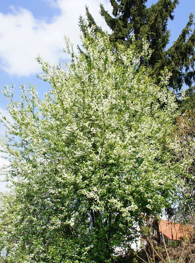 Це невисоке дерево наприкінці весни цвіте численними, довгими китицями білих квітів із запахом мигдалю. Його листя також декоративне, восени стає червоним або жовто-оранжевим. А маленькі чорні гіркі плоди цінуються птахами. Дізнайтеся, як проводити вирощування черемхи, посадку та догляд, подивіться фото та опис сортів цього дерева. Його компактний силует іноді має кілька стовбурів та округлу, вузьку та густу крону з пониклими гілками. Рослина добре підходить для живоплоту або посадки ізольовано в невеликому затіненому саду.