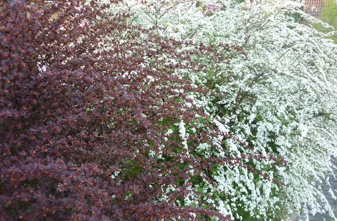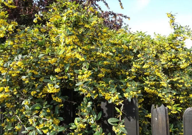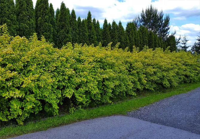 Щоб створити густий живопліт біля паркану саджають також листяні чагарники з густою кроною.