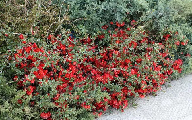 - колючі чагарники (барбарис Тунберга, Юліана, карагана деревовидна, піраканта, айва японська, шипшина);