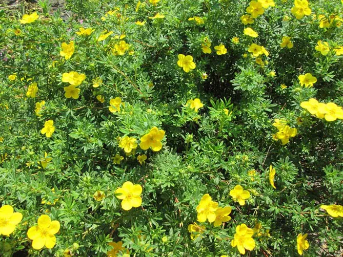 П’ятилистник або лапчатка кущова або курильський чай – це назви невеликого чагарника висотою до 60-100 см і такої ж ширини. Прикраса лапчатки – маленькі, численні квітки, схожі на квіти суниці. Квітки бувають жовтими, білими, рожевими, оранжевими, червоними. Цвіте рослина виключно довго, рясно. Кущі лапчатки густі, неправильної, кулястої форми, пагони прямостоячі дугоподібні. Листя дрібне, перисте, трохи опушене. Перший сезон цвітіння з червня по липень – кущі цвітуть дуже рясно, а потім менш рясно до заморозків.