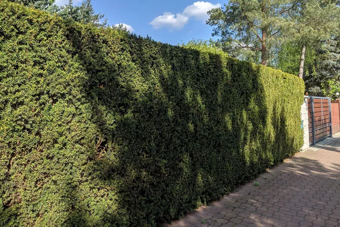 Живопліт з туї відмінно доповнить будь-який паркан, вона захистить від сторонніх поглядів, пилу. Часто саджають тую західну сорту «Смарагд». Це одна з найкращих і популярних туй конічної форми, ідеально підходить для живоплоту. Характеризується помірно сильним ростом – через 10 років виростає до 2,5 метрів, річний приріст становить близько 30 см. Рослина має конічну правильну форму і яскраво-зелений (майже смарагдовий) колір хвої, який не змінюється навіть взимку.
