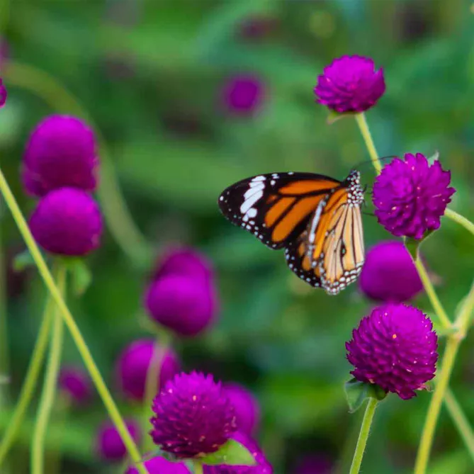Gomphrena globosa – типовий «ловець» метеликів. Її квіти – така сама приманка для метеликів, як і квіти будлеї.