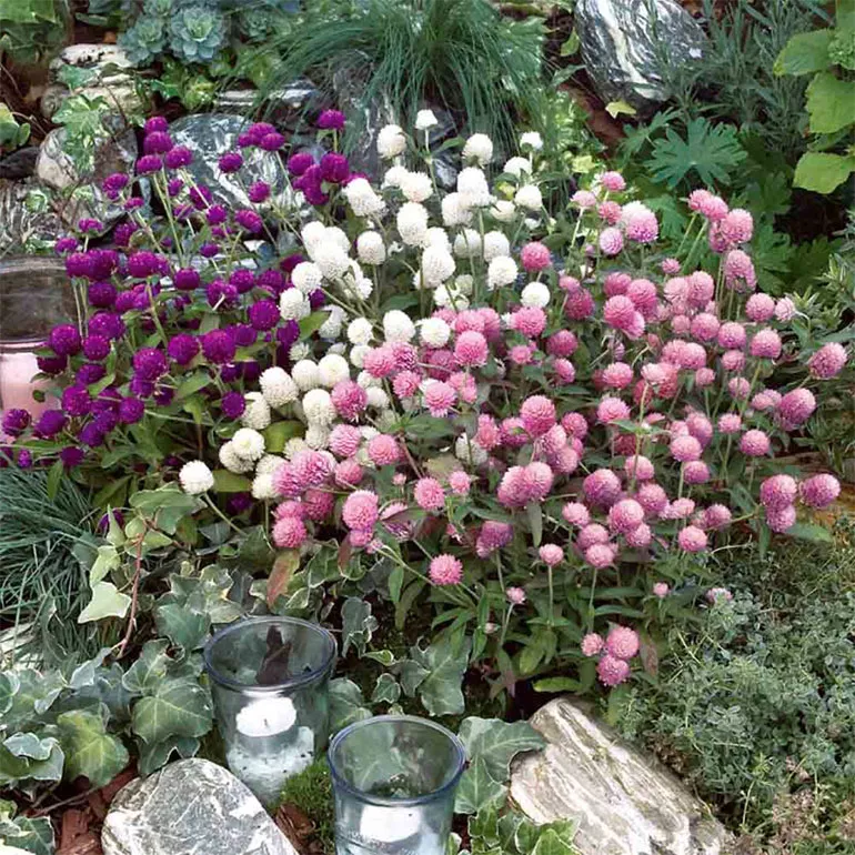 Це незвичайна рослина з кулястими квітами, ніби паперовими, цвіте з липня по листопад, до перших заморозків. Характерні квіти зібрані в оригінальні суцвіття у вигляді кулястих рожевих, червоних та білих головок (є і двоколірні різновиди). Ми розповімо, як вирощувати гомфрену – посадка та догляд у відкритому ґрунті, покажемо фото цікавих сортів.