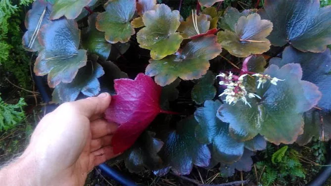 Навесні та влітку дрібні пучки красивих різьблених листків шириною 5-8 см з довгими черешками можна помилково прийняти за різновид гейхери. Однак це зовсім інша рослина – Розрив-трава кортузолиста (Saxifraga cortusifolia) родом з Китаю, Японії або Кореї.