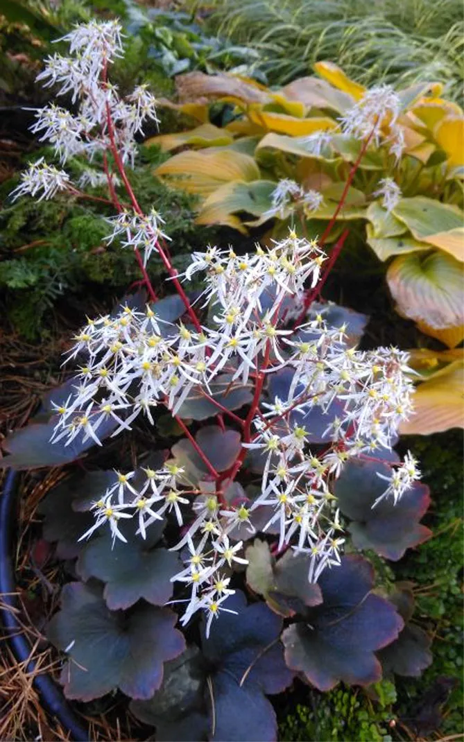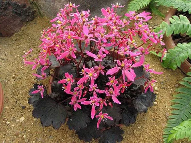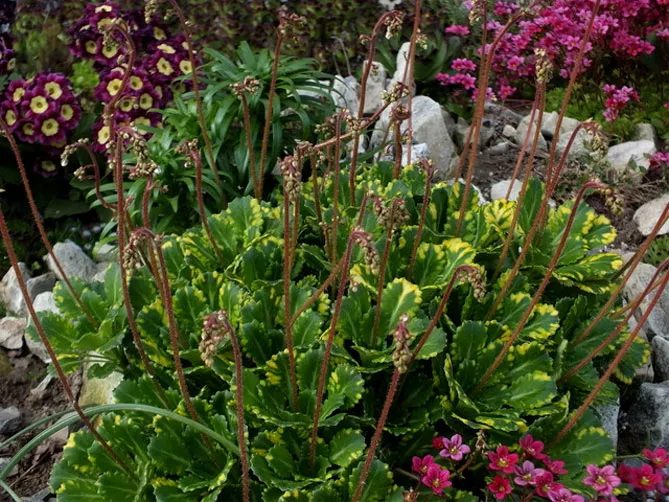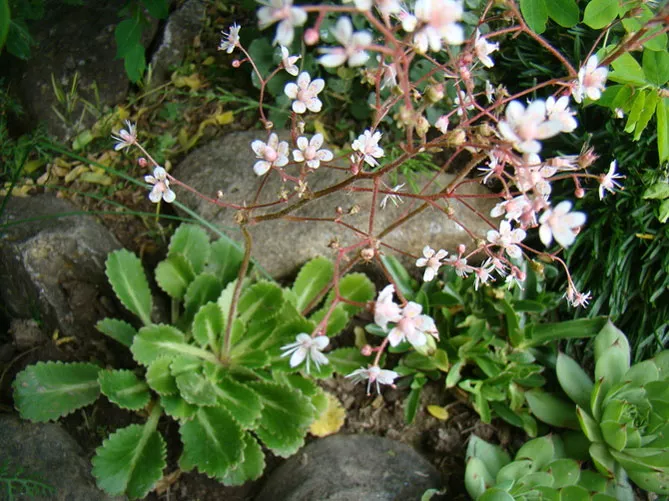 Азійська красуня, що цвіте тільки восени – розрив-трава Форчуна захоплює листками, що утворюють красиві розетки. Хвилясті краї листків і червоний колір нижньої сторони надають рослині декоративного відтінку. На тлі листя гарно виглядають кремові або рожеві квіти, зібрані в рихлі суцвіття.
