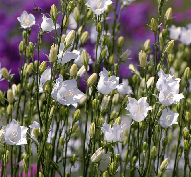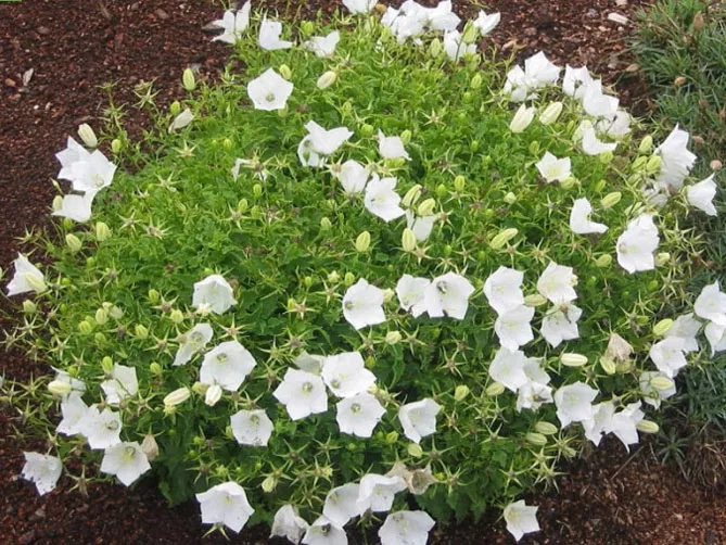 - «Уайт Кліпс» (White Clips) – прикрашає рокарії та клумби білосніжними дзвоноподібними квітами, що розвиваються з травня по липень. Після цвітіння потрібно видаляти відцвілі суцвіття, щоб багаторічник знову зацвів у вересні. Білий дзвоник досягає висоти 20-30 см.
