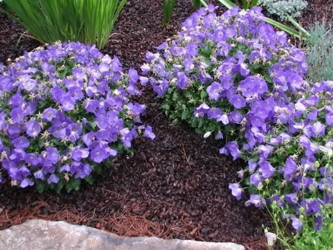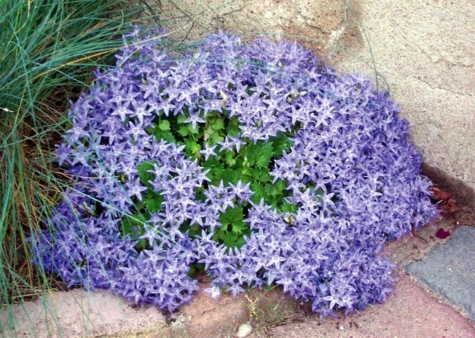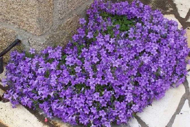 - Ложечницелистий (Campanula cochleariifolia) – багаторічник з численними синіми квітами.