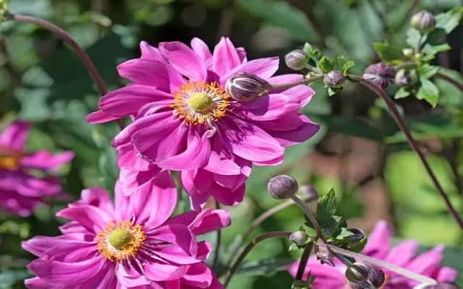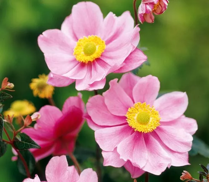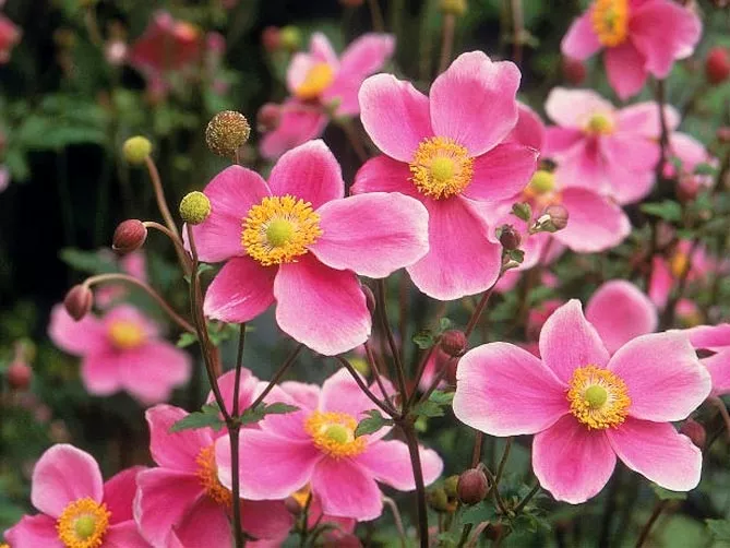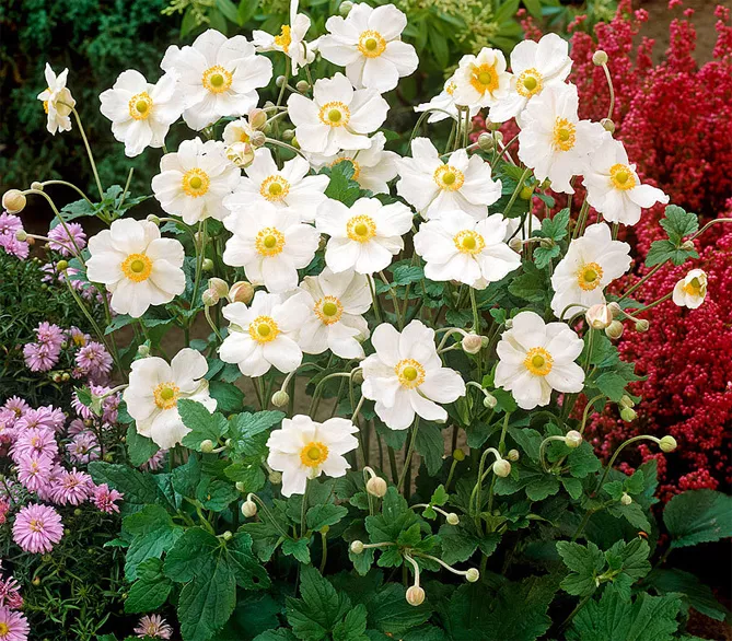 Осінні анемони – високі рослини, які розвивають гарні, барвисті квіти до осені. Ці квіти зазвичай продаються у горщиках. Посаджена пізньої весни на рабатки, вони розцвітуть того ж року. Відстань між саджанцями має становити приблизно половину висоти рослини або 20-50 см.
