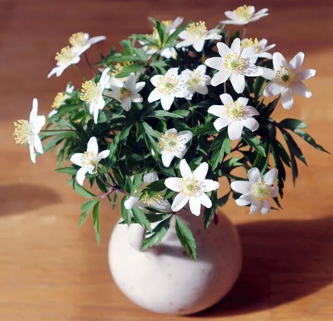 Біла анемона має білі квіти і росте в наших лісах, освітлюючи листяні ліси навесні. Рослина виростає до 15-20 сантиметрів, любить вологий ґрунт під деревами. У виду білі квітки, можливо, трохи рожеві знизу. Садові сорти мають рожеві, рожево-бузкові або сиреневі квіти.