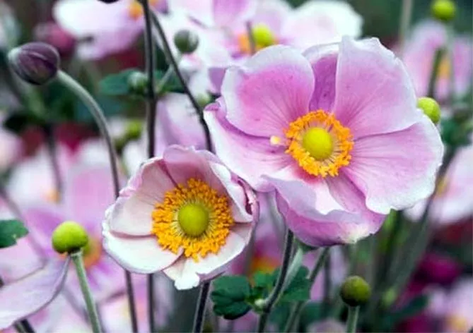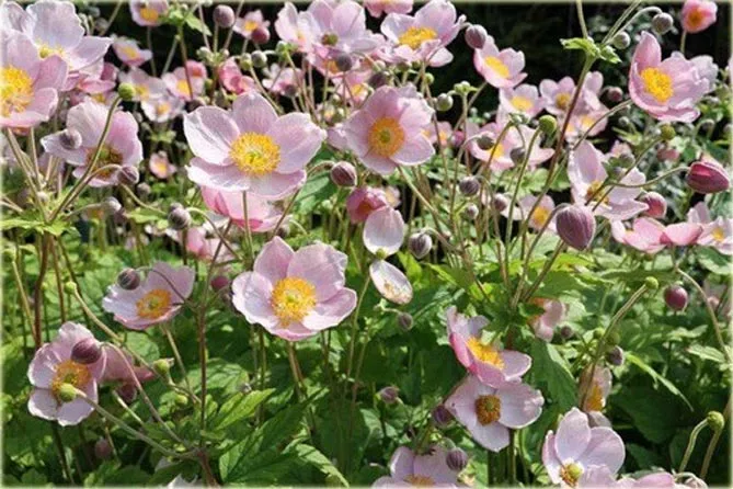 Осінні сорти японських анемон квітнуть у другій половині серпня. Серед них варто виділити:
