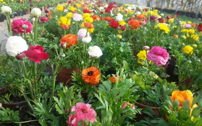 Квіти ранункулюса мають різноманітні забарвлення: