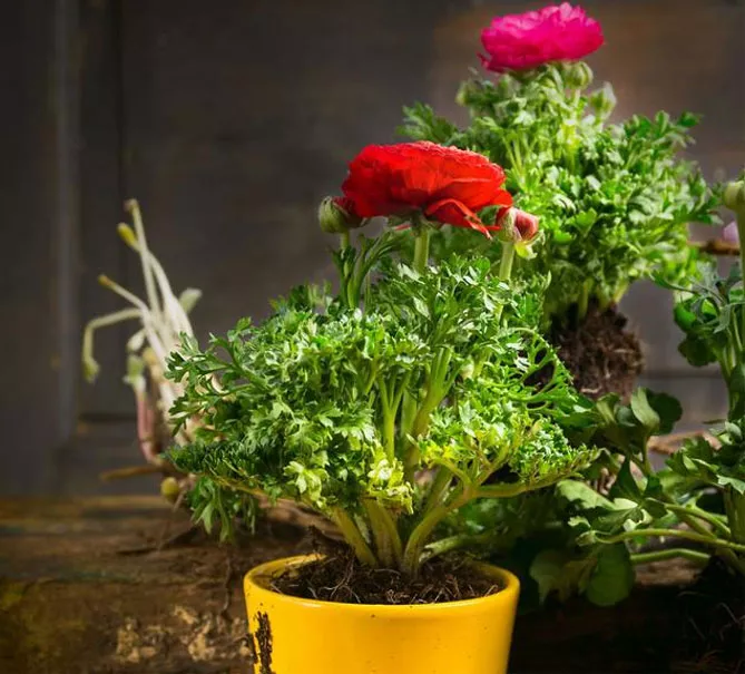 Також можна посадити попередньо підготовлені саджанці ранункулюса в горщиках.