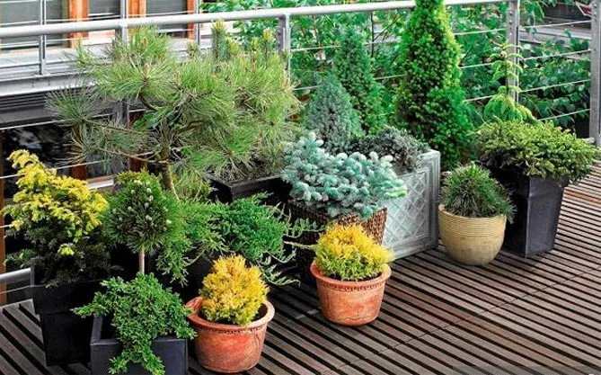 Декоративний чагарник чудово працює на великих терасах, балконах. Краще вибирати сорти з повільним ростом. Вони гарно виглядають на балконах у стилі шебі-шик, класичних.
