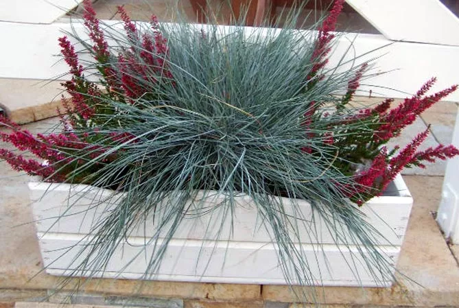 Надзвичайно популярний вид декоративної трави. Особливої уваги заслуговує гарний сталевий колір. Добре справляється з сильними морозами, може залишитися на балконі навіть на зиму. Феноменально виглядає у поєднанні з вересом.