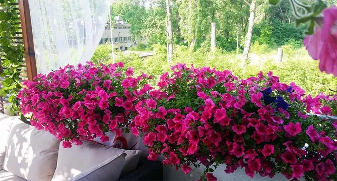 Сурфінія вдало росте на сонячному балконі (можна поставити і в напівтіні), у родючому ґрунті.