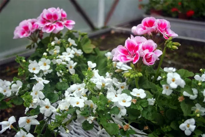 Можна вибирати з безлічі сортів із квітами різних кольорів, є варіанти з простими та махровими квітками. Підвісні герані чудово підходять для створення балконних композицій: можна посадити герані в один контейнер або об'єднати з іншими квітами.