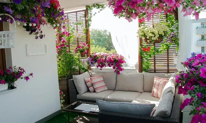 Оформлення балкона квітами має відповідати стилю інших елементів, наприклад меблів. Усі елементи на балконі утворюють єдине ціле.