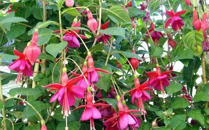 Раніше фуксії панували переважно в квартирах як кімнатні рослини. Сьогодні існує тисячі сортів – маленьких (висотою 20 см) і великих (висотою 60 см), які живуть на балконах, терасах. Квіти чудово виглядають на балконах, оформлених у східному стилі. Залежно від типу фуксії бувають у формі дерев, висаджуються у підвісні кошики або додаються до різнобарвних композицій у ящиках. Квіти – у відтінках рожевого, червоного та пурпурового, часто двоколірні – з'являються з ранньої весни до пізньої осені.