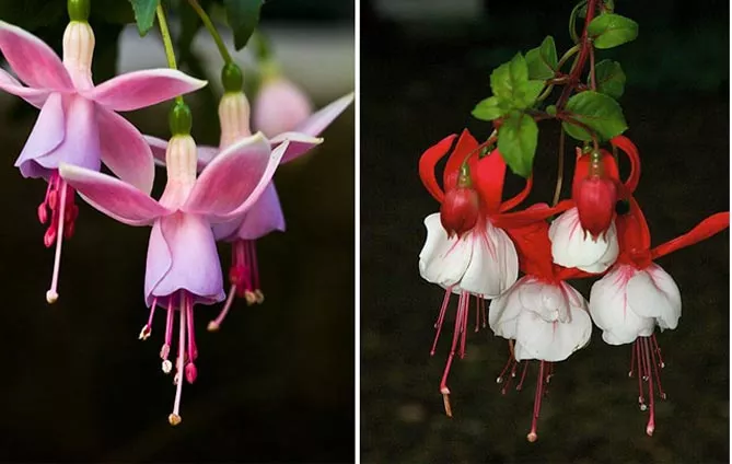 Сорти фуксії із звисаючими пагонами краще садити індивідуально у висячі контейнери. Є багато сортів із різними квітами на вибір.