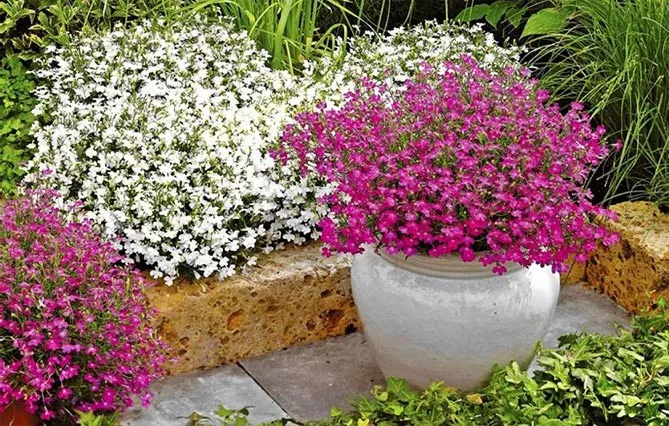 Раніше лобеллії утворювали лише невеликі скупчення крихітних квітів, сьогодні з'явилися ампельні сорти з довшими, звисаючими пагонами, підходящими для підвісних кошиків. Лобелія любить родючий і злегка вологий субстрат, сонячні позиції. Коли вона втрачає красу, її можна обрізати до висоти 15-20 см – тоді лобелія повторить цвітіння. Розмножується насінням, посіяним у січні-лютому у теплиці.