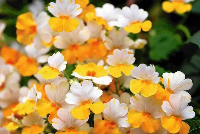 Залежно від сорту, немезії мають прямі або звисаючі пагони. Суцвіття досягають 50 см у діаметрі. Квітки (близько 1,5 см) жовтого, помаранчевого, червоного кольору з'являються у великій кількості протягом усього сезону. Нові сорти мають підвищену стійкість до високих температур.
