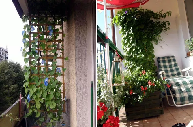 Виті квіти займають небагато місця, а виглядають досить ефектно. Їм можна надати бажану форму. Вибір ліани залежить від розташування балкона: у тіні чи на сонці.