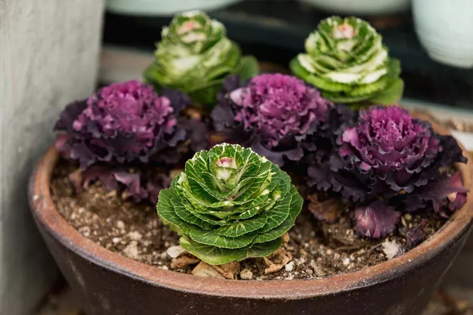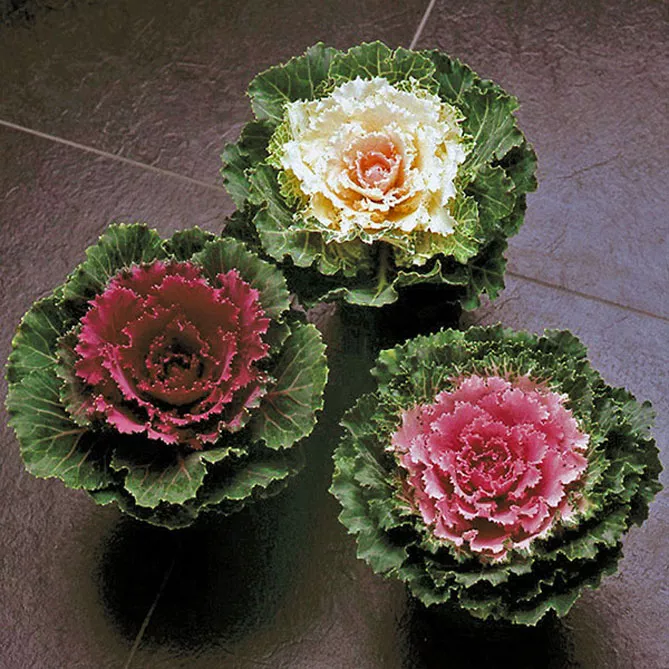 Саджанці декоративних сортів капусти, куплені восени, зазвичай мають дуже гарний, компактний вигляд і короткі, коренасті стебла з великою кількістю листків. Якщо вирощувати капусту з посіяних своїми руками насінин, можна отримати високі, хиткі головки на довгих, лисих стеблах (навіть понад 50 см заввишки), які нерішуче тримають рівновагу у горщи капусту групами, щоб підкреслити її надзвичайну красу.