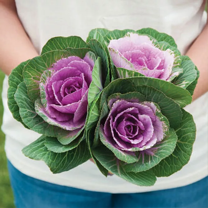 - «Чідорі» Chidori – має темно-зелені листки із зазубринами, що оточують щільний пурпуровий центр. Виростає до 25 см у висоту. Посів насіння: з червня по липень.
