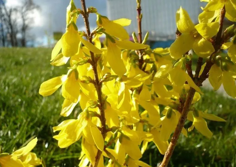 Декоративні жовті квіти форзиції розвиваються до появи листя. Це один із символів весни. Кущ сягає висоти 2-3 метри. Існує багато різновидів форзиції, доступних у продажу, які розрізняються, наприклад, інтенсивністю росту. Рослині потрібні легкі, родючі ґрунти.