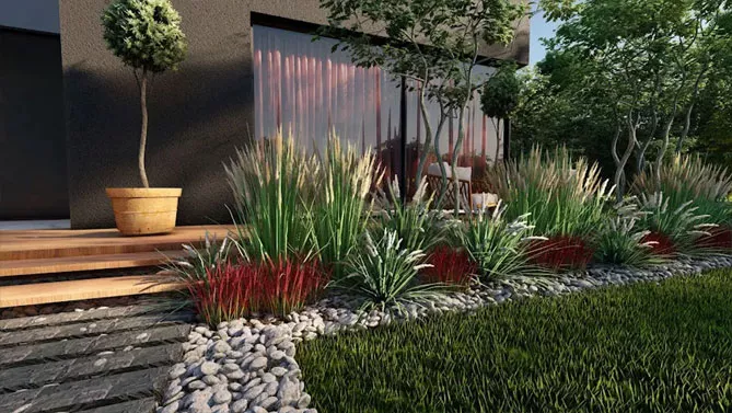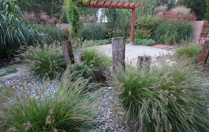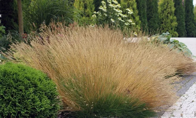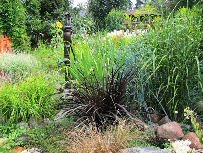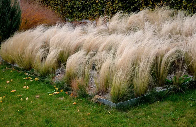 Багаторічні злаки можна посадити, наприклад, біля стіни будинку, паркану, перголи.