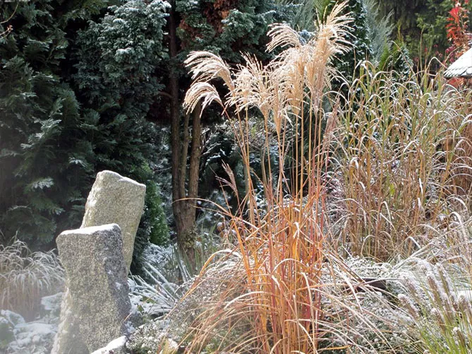 Фото. Багаторічні декоративні злаки (трави) в садах восени та взимку