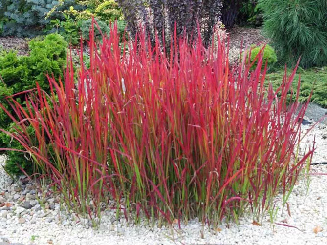Надзвичайно ефектна трава імперата циліндрична «Червоний барон» або «Ред Барон» (Imperata cylindrica ‘Red Baron’) досягає висоти 40-50 см. На початку сезону для неї характерні прямостоячі, світло-зелені листки. У вересні-жовтні вона радує червоно-фіолетовими листками. Рослина не цвіте в наших кліматичних умовах. Віддає перевагу сонячним ділянкам, захищеним від вітру та вологим, родючим, ґрунтам. Взимку імперату потрібно вкривати сухим листям. Навесні її обрізають низько до землі.