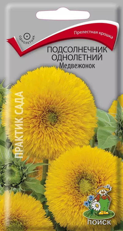 Популярний у наших садах сорт соняшника «Ведмежатко» зобов'язаний своєю відомістю гарним, жовтим, махровим суцвіттям, що досягають діаметра 10 см. Висота рослин – 50 см. Цвітіння починається з середини літа та триває до середини осені, залежно від клімату.