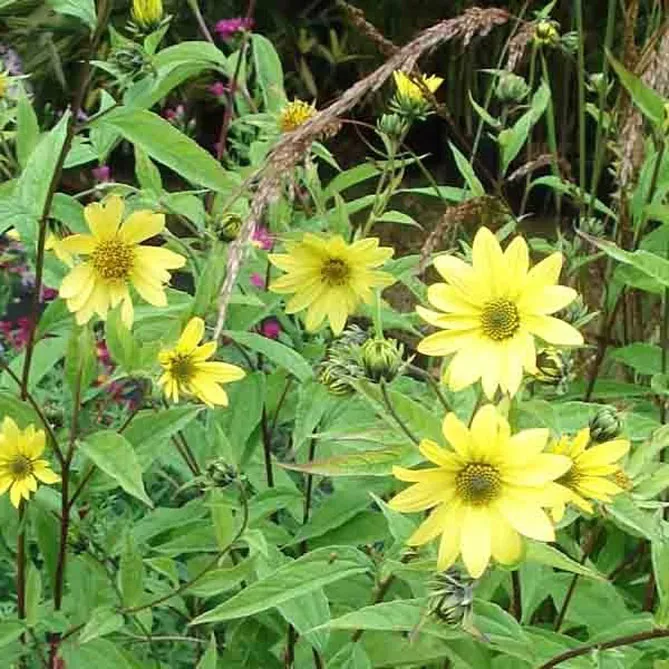 Завдяки високому та структурованому силуету великі багаторічні соняшники чудово виглядають у всіх природних композиціях та у садах натуралістів, яким вони надають жвавості та легкості.