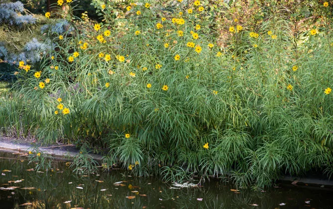 - Якщо посадили швидкорослі інвазивні види (Helianthus Maximiliani), викопайте їх восени та видаліть коріння з периферії, щоб обмежити зростання рослини.